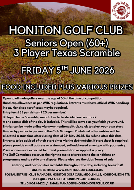 Closed - due to last night's storm and heavy rainfall causing widespread disruption to travel, and dangerous conditions on the course, both the Course and the Clubhouse will be closed today. Updated: 27th Jan 2026