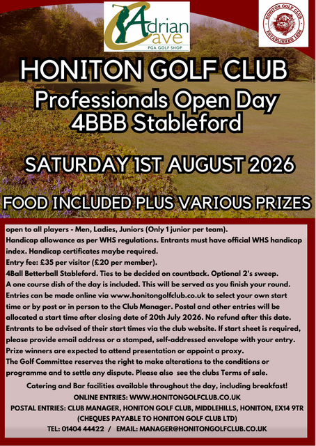 Closed - due to last night's storm and heavy rainfall causing widespread disruption to travel, and dangerous conditions on the course, both the Course and the Clubhouse will be closed today. Updated: 27th Jan 2026